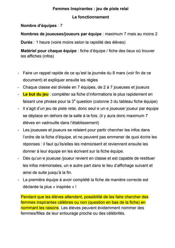 Femmes Inspirantes Jeu Relai Règle