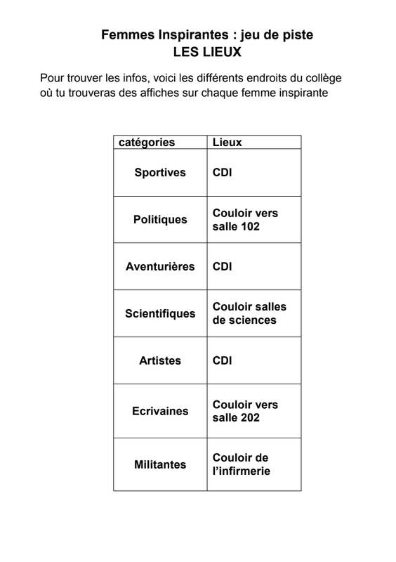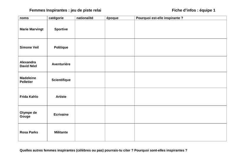 Femmes Inspirantes Fiches D'Équipe Pour Le Jeu De Piste Relai