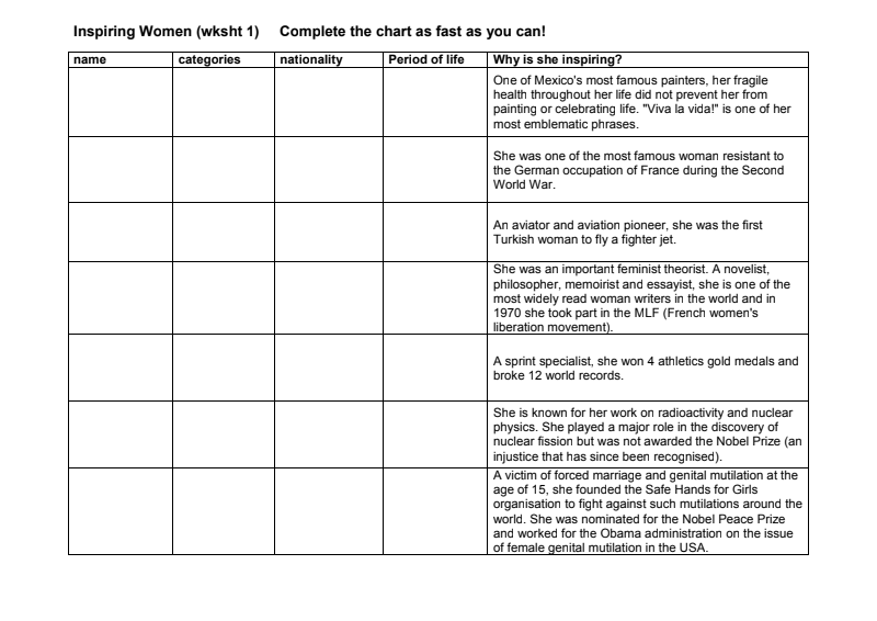 Inspiring Women Activity In English Ce